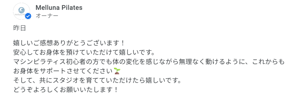 理学療法士だから安心して任せられました、という50代のお客様からの嬉しいお声 2025 11/28 お客様の声 ブログ 2025年11月28日 お客様の声 ブログ よかったらシェアしてね! URLをコピーする URLをコピーしました! URLをコピーしました! 寒さに負けない!「肩首こり解消法」 関連記事 寒さに負けない!「肩首こり解消法」 2025年11月27日 ピラティスナビに当スタジオが掲載されました 2025年11月23日 運動初心者さんからの嬉しいお声|ぎっくり腰の不安と向き合いながら、前向きに踏み出した第一歩 2025年11月23日 【50代後半|月4会員さま】マシンピラティス2回目の変化 2025年11月22日 反り腰や前ももの張りが気になる30代女性の変化 2025年11月6日 産後11か月ママの変化 2025年11月6日 たった1回で変化を実感!子連れでも安心のMelluna Pilates体験談 2025年10月29日 左のお尻が痛い産後ママ 2025年10月29日