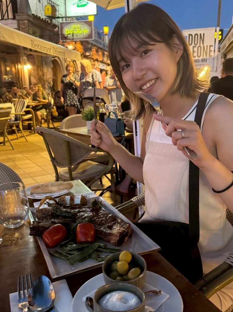 幸せを感じる瞬間:美味しいご飯を食べているとき、青空や太陽の光を感じるとき、夫とハグしているときに幸せを感じます。